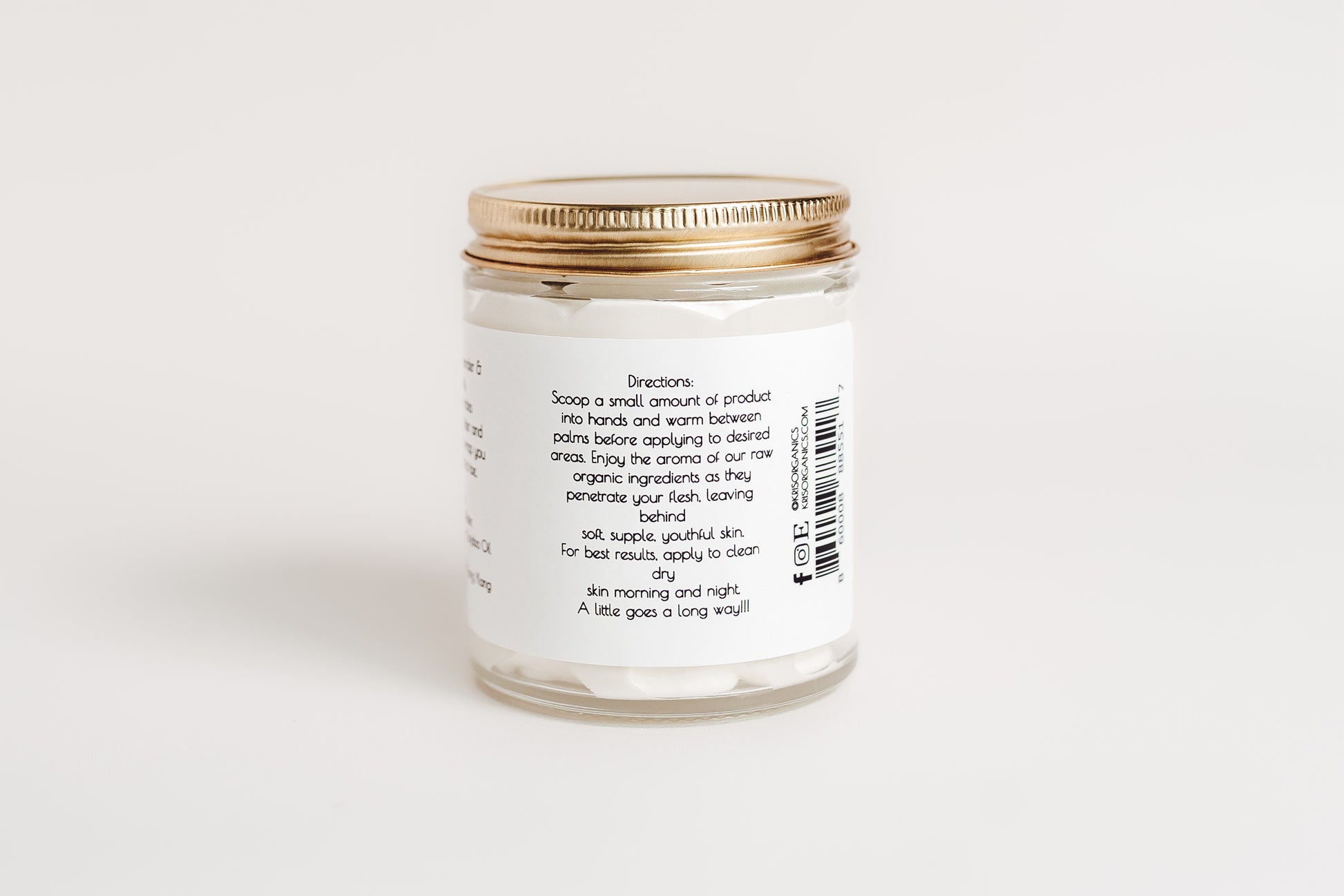 Experience the ultimate in skincare with our Organic Whipped Body Butter, meticulously handcrafted in small batches to ensure the highest quality. Our rich, velvety formula is designed to provide your skin with deep nourishment and a sumptuous feel.